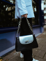 - Dieser Artikel beinhaltet den Handtaschen Body und die abgebildete Wechselklappe sowie den verstellbaren Taschenriemen und die Schulterkette